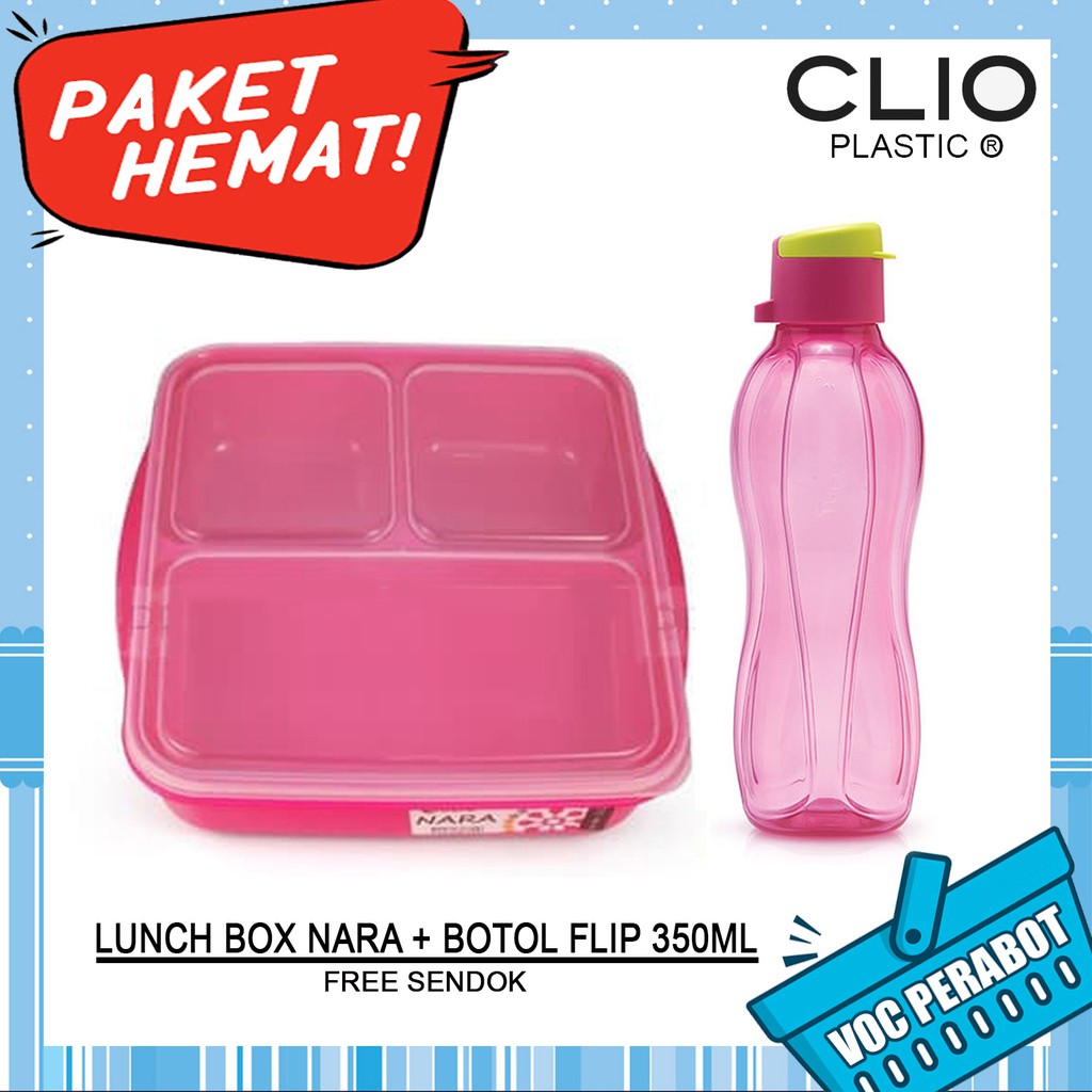 Paket Hemat Luch Box Clio Nara Botol Minum Clio Flip 350ml Perabot Shopee Indonesia