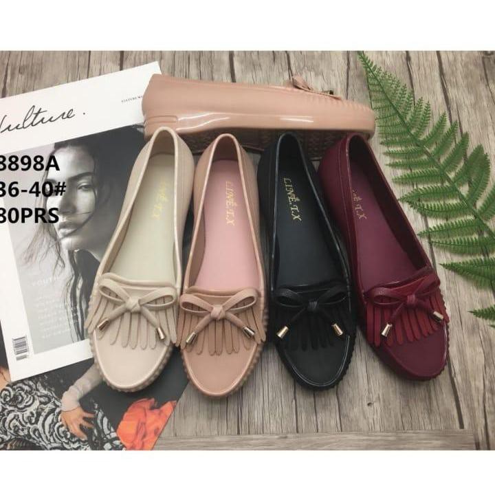 Vio Id Jelly Shoes Wanita Sepatu Balet Jelly Flat Shoes Rumbai Pita 3898a Warna Dikirim Random Shopee Indonesia